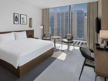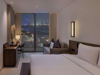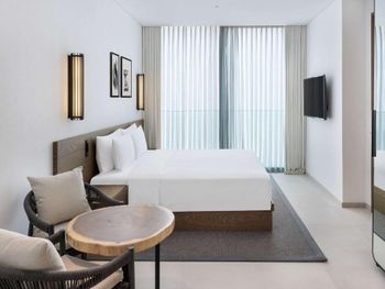 Номер оставил приятное впечатление, особенно порадовал свежий ремонт. Вид из окна интересный, море видно, но и соседние окна тоже (брали с видом на море). Завтраки в отеле вкусные, много опций для вегетарианцев. Вдоль воды красивая прогулочная набережная. Рядом большой торговый центр. Станция монорельса 5 минут пешком (проезд 10-20 дирхам) с возможностью пересадки на трамвай. То есть на общественном рельсовом транспорте можно доехать до Бурдж Халифы, оплатить можно картой nol. Частые гости в Radisson, но конкретно в эту локацию больше ни ногой, так как ночью хочется спать, а не музыку слушать.