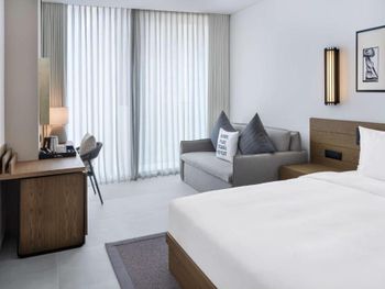Очень понравилась локация + отель новый, чистый и эстетичный . Вдоль отелей идет длинная просторная дорожка, мы гуляли каждый вечер и дышали свежим воздухом + очень близко находится ТЦ где есть старбакс маркет и все что нужно