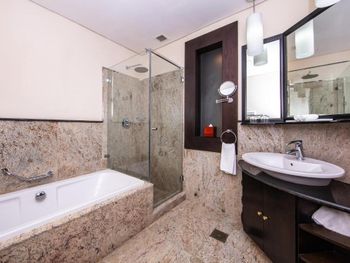 Огромный минус отелю - невнимательное отношение. Был забронирован номер для 4х человек с целью нормально провести ночь, выспаться перед дальнейшим перелетом, но не вышло. При заселении нам дали номер лишь с 1 кроватью!! дети уже большие 7 и 10 лет и это указывалось при бронировании. да, можно было уложить детей на диваны, но они были не подготовлены, даже дополнительных спальных комплектов в номере не было. Халат 1, так же 1 пара тапочек. это говорит о том, что номер подготовили на 1 человека. в номере немного пыльно. Но сам номер красивый, отличная сантехника и набор косметики включает все необходимое (но так же на 1 человека). полотенец, кстати, тоже было всего 2. За такое невнимательное отношение снижаю оценку.