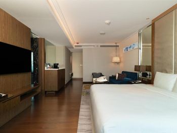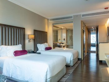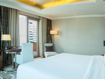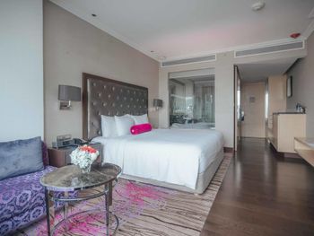 Не понравилось отношение на ресепшн! Пытались сделать заказ еды в номер, меня начали расспрашивать из какого меню заказ, из какого ресторана... (к слову меню в номере одно). Поужинать в тот день мы пошли в другой ресторан. При решении других вопросов на ресепшн также особой помощи не получили. Если вы говорите, «don\'t understand», не пытаются вам объяснить что-то, а просто повторяют туже самую фразу очень медленно, по слогам... Интернет тоже работал странно, вроде и ловит, но в тоже время после разблокировки экрана телефона нужно снова ловить вайфай, а иногда и снова вводить пароль. И на бассейне вайфай ловил не везде, поэтому лежать у бассейна и работать, не вышло. Рядом с отелем всегда пробка, что тоже не очень понравилось. В целом, желания вернуться в этот отель - нет.