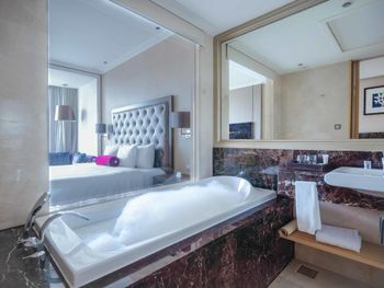 Это даже не близко 5 звезд. Ни одного круглосуточного бара в отеле + странные графики работы ресторанов (например, китайский с 11 до 2:30 и с 6 вечера до 11 вечера) Персонал откровенно не хочет тебе помогать. Или не может из-за плохого понимания английского. Проблемы с кондиционированием. И многое другое.