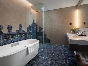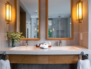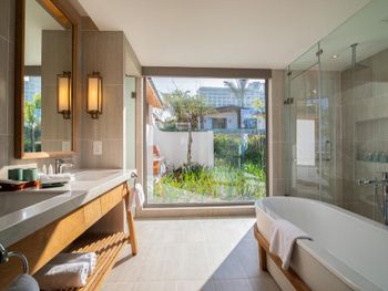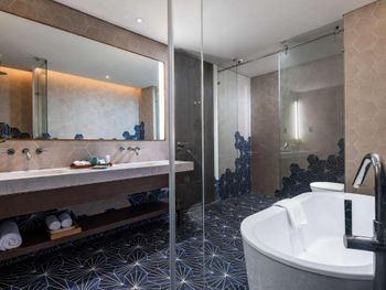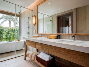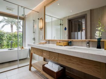 Вид из номера завораживающий. Номера красивые. Ванна с двумя раковинами, душем и ванной - комфортно.