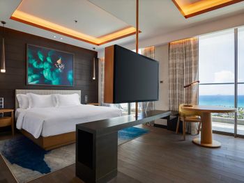 Во всех номерах курортного отеля Radisson Blu Cam Ranh есть шкаф для одежды, чайник, кондиционер и телевизор с плоским экраном и спутниковыми каналами. Собственная ванная комната с ванной и душем укомплектована феном и бесплатными туалетно-косметическими принадлежностями. Из окон открывается вид на море. Кроме того, в каждом номере обустроена гостиная зона.
