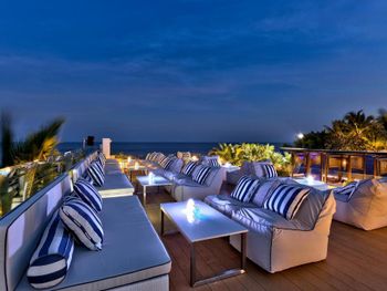 В ресторане IVY с панорамным видом на море подают пасту и освежающие напитки.