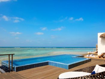 при заселении не предусмотрен приветственный напиток. нет традиционной встречи как на других островах. Отель не закончен. не предусмотрена возможность помыть ноги при входе в номер и бассейн на острове. общественные туалеты на острове не совсем чистые и без кондиционеров. все велосипеды ржавые, хоть им и всего год. страшный центр водных видов спорта. перед экскурсией нет где посидеть, ты вынужден стоять под палящим солнцем и ждать пока все соберутся. да и территория вокруг просто жуть, стройка бетонные плиты и т.д. ( вокруг центра водных видов). если вы хотите посетить традиционный Мальдивский отель, то это не тут. Рифа как такового нет. Водные виллы без полезны, войти с них в воду почти невозможно. Очень сильное течение и большие волны. Пришлось два раза участвовать в спасении туристов, которые не могли справится с течением. Может это было связано с погодой или временем года. Отель новый, поэтому не зеленый, пальм очень мало. Тени нет. Песчаных дорожек по которым можно ходить пешком нет. Все дорожки укатаны щебнем, по ним ездят багги. Это на мой взгляд худший отель из 7 на которых я был на Мальдивах. Хоть персонал и очень старается.