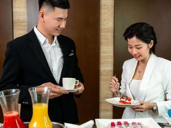 Забронировали отель с целью отдыха на 2 ночи, оплатили отель наличными. Сотрудник на ресепшене начала искать в паспортах нашу визу, хотя у нас есть TRC карта для временного проживания во Вьетнаме ( естественно виза была в паспорте уже просрочена), начались вопросы непонятные о том где виза, хотя мы предложили показать им свою карту TRC. Удивило что сотрудники взяли полномочия пограничной службы)) Далее нам озвучили стоимость на 500.000 vnd выше указанной суммы (бронь и персональную скидку предоставляем именно Booking.com), начали требовать депозит, хотя в правилах отеля нигде не прописана данная информация. Когда нам выдали ключи, нам не предложили проводить и сопроводить багаж до номера( тк в отеле впервые, мы не знали куда идти), пришлось попросить их , только тогда нас сопроводили.