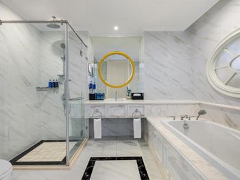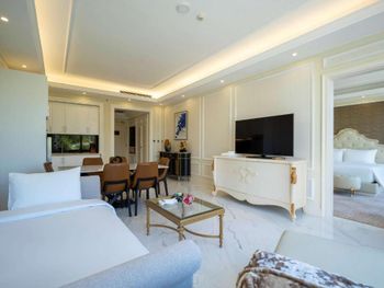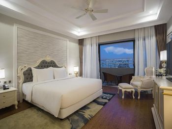 В целом хочу сказать, что отель не соответствует заявленной пятёрке. Сервиса ноль, старался только русско-язычный сотрудник Гоша. При заезде заселились в номер, в котором пахло канализацией в уборной, замену номера ждали 4 часа. Кофемашины нет, у нас был вид на бассейн, где очень громко включают музыку даже с закрытым балконом невозможно отдохнуть. В отеле один единственный лифт, от которого нужно идти до номера по бесконечному коридору с подуставшим ковровым покрытием. На завтраке не хватает столов, нужно стоять в очереди, чтобы туда попасть даже в 8.30 утра.