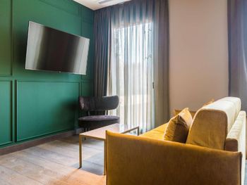 1) не работал пульт, который открывал окно на террасу. 2) Терраса просматривалась постояльцами отеля, проходящими мимо. 3) При заселении в номер уже работал телевизор.
