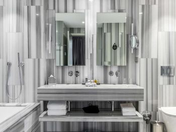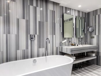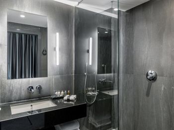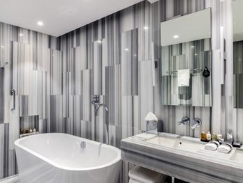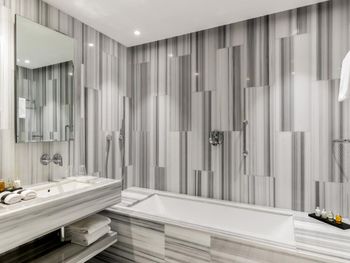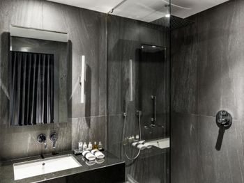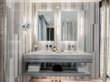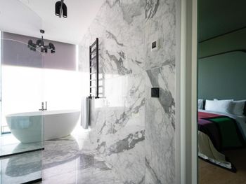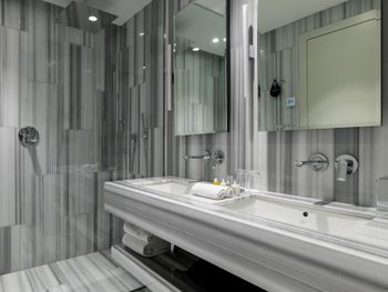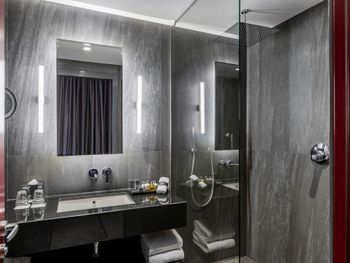 С нами произошел очень неприятный инцидент, испортивший всё остальное безупречное впечатление. Рано утром, когда я выходил из душа, в дверь комнаты громко и настойчиво постучали. Моя жена открыла дверь — и обнаружила за ней троих охранников, которые кричали что-то ​​по-грузински (мы их не понимали). Она попросила их объяснить по-английски, но они продолжали кричать, глядя в сторону нашей ванной. Мне пришлось выйти из ванной в одном только полотенце — после чего они внезапно ушли, не сказав больше ни слова. Подумав, что в здании отеля может быть пожар, я позвонил на ресепшен и обнаружил, что они понятия не имеют, что происходит. Позже они перезвонили мне и сказали, что дверь в нашу ванную была открыта, когда я принимал душ — и охрана пришла к нам из-за пара. Честно говоря, я не знаю, запрещено ли законом в Грузии принимать душ с открытой дверью ванной; или почему охрана не может отличить пар от дыма — но я точно знаю, что отель такого уровня должен больше заботиться о своих посетителях и нанимать охранников, которые хоть немного знают английский — и, конечно, не ведут себя так агрессивно, чтобы довести мою жену до слез. Это абсолютный позор для отеля.