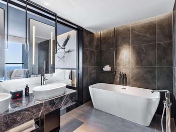 Отель новый, все новое и современное. Запаха сырости нет. Дорогая сантехника. Все качественное. Матрас отличный. Постельное, халаты и текстиль новые. Вид из окна завораживает - во всю ширину обзора видно море и рассветы. Завтраки отличные, еды много и на любой вкус. Персонал молодой, на наши обращения реагировали моментально. В баре очень вкусный кофе с кокосом и манго смузи. Питались в Мишленовских ресторанах, это в среднем 15 мин на такси от отеля. Еда очень вкусная везде.
