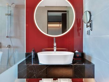 интерьер — и лобби отеля, и сам номер выполнены в стиле RED, ни с каким другим отелем не перепутаешь);