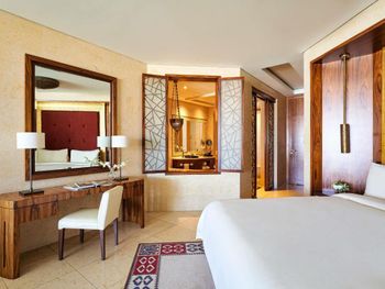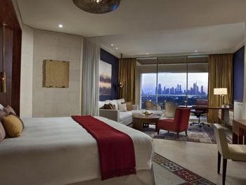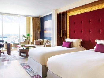 Номера отеля Raffles Dubai оформлены с использованием дорогих тканей и орнаментов ручной работы. Во всех номерах обустроен отдельный большой балкон с видом на городской пейзаж Дубая. В распоряжении гостей телевизор с плоским экраном, мини-бар и роскошная ванная комната. Номера оснащены интерактивной цифровой системой, которая позволяет гостям управлять всеми удобствами номера через телевизор или iPad. Во всех номерах предоставляются услуги дворецкого.