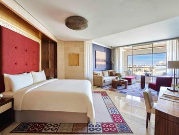 Отель очень красивый, необычных и просторный. Был русскоязычный переводчик и было легко оформить - поменять номер тк был небольшой негатив, который на второй день исправили и нам дали номер на 9 этаже с видом на внутренний парк и вид на отель Обелиск -Софитель. В номере было все необходимое для отливного проживания, удобная большая кровать, пушистые полотенца и халат, тапочки, все принадлежности для ванной, Сам номер очень большой 70м2 и это очень приятно, мы тут уже не в первый раз отдыхаем , прямо из отеля можно пройти на прогулу в ВАФИ МООЛ, красивый и просторный и народу там нет толпы как Дубай моол , в Вафи суук( рынок ) предлагают много товаров и особенно парфюмерную продукцию. Завтрак был отличный, но в это время в самом отеле было много народу , видимо потому ,что море еще холодное. ( и мы попали в редкий 2 дневный дождь) и предпочитают отдыхать в красивом месте и местные жители.