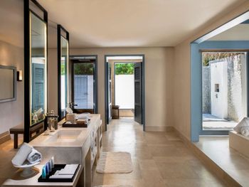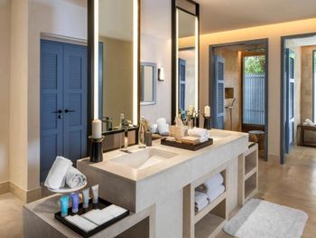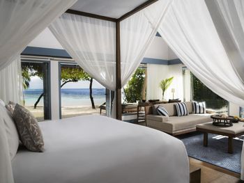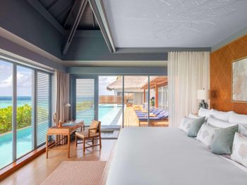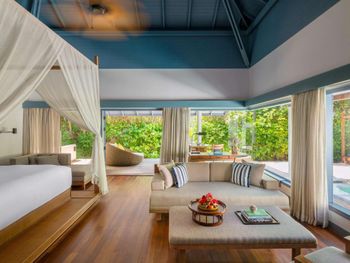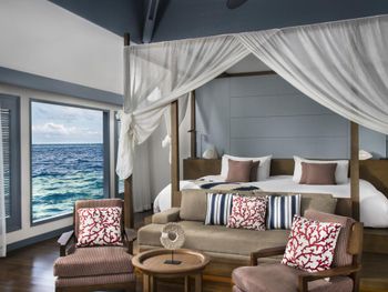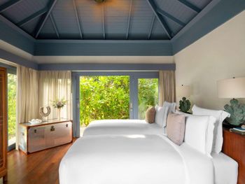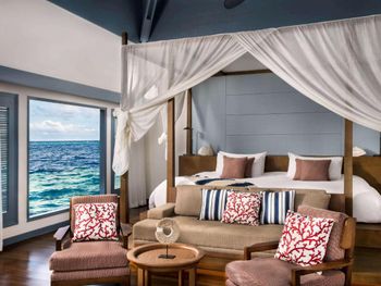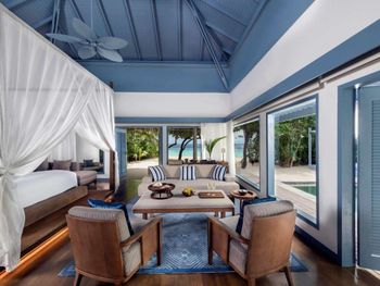 Все номера оснащены чайником. В распоряжении гостей собственная ванная комната. Все номера отеля Raffles Maldives Meradhoo оснащены кондиционером и телевизором с плоским экраном. Гости, желающие провести время в спокойной обстановке, могут воспользоваться собственным бассейном и душем на открытом воздухе. На каждой террасе этой виллы над водой установлена стеклянная панель, которая позволяет открыть для себя живописную морскую жизнь внизу.