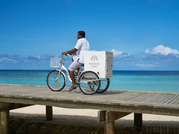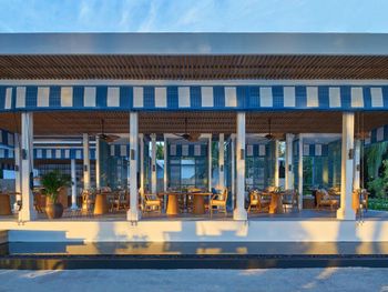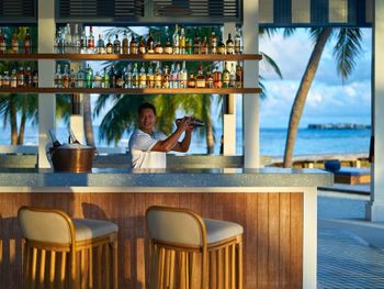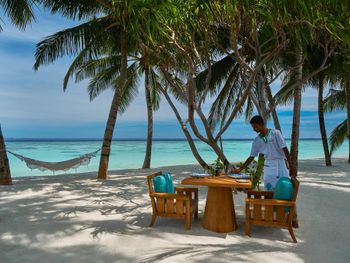 Ресторан Thari открыт в течение всего дня. Здесь гости могут насладиться трапезой в непринужденной обстановке на пляже. В отеле Raffles Maldives Meradhoo гости могут насладиться уникальным пляжным отдыхом в ресторане BBQ, где подают охлажденные коктейли и отличные вина.