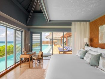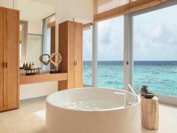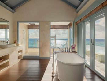 Все номера оснащены чайником. В распоряжении гостей собственная ванная комната. Все номера отеля Raffles Maldives Meradhoo оснащены кондиционером и телевизором с плоским экраном. Гости, желающие провести время в спокойной обстановке, могут воспользоваться собственным бассейном и душем на открытом воздухе. На каждой террасе этой виллы над водой установлена стеклянная панель, которая позволяет открыть для себя живописную морскую жизнь внизу.