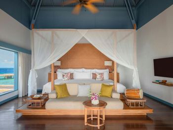 Начну с того, что отдыхаем на Мальдивах достаточно много, и много резортов посетили. Здесь очень понравился риф, он действительно пестрит цветными рыбками, и много живых кораллов, что достаточно не часто встречается. Кораллы и розовые и жёлтые, белые и серые и прочие. Акулы есть, но мелкие, видели черепах. Мант, которые на фото в галлерее, к сожалению нет и экскурсий на них. Но есть дельфины, которых можно увидеть. Между островом и водными виллами курсирует мини яхта , вечером парни для вас на яхте включат зажигательную диско и светомузыку, по времени 2-3 мин перемещение. Хороший Spa, хороший фитнес зал, water sports, вечером за ужином живая музыка. Для детей проводят мастер классы 1 раз в день с 15:00-16:00, когда нет мастер класса, то вечером смотрят мультфильм. Как такого детского клуба здесь нет и остальное время детей нужно развлекать самостоятельно. Красивые, комфортные и просторные виллы.