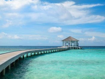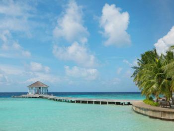 Water виллы не соединены с островом мостиком, это обеспечивают особую приватную атмосферу. Для того чтобы доехать до острова, например на завтрак, необходимо воспользоваться трансфером-катером. Обычно он всегда стоит у причала, в редких случаях приходилось ждать 2-5 мин. до острова ехать тоже минуты две.