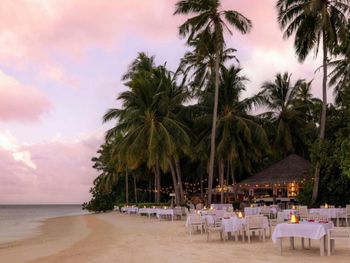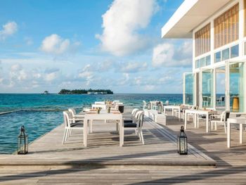 Ресторан Thari открыт в течение всего дня. Здесь гости могут насладиться трапезой в непринужденной обстановке на пляже. В отеле Raffles Maldives Meradhoo гости могут насладиться уникальным пляжным отдыхом в ресторане BBQ, где подают охлажденные коктейли и отличные вина.