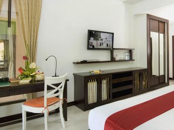 Мы заметили интересную специфику, практически все русские туристы жили именно в старом корпусе отеля возле пруда. Основной минус- постоянная вонь канализации в ванной комнате, сам интерьер ванной оооочень ушатанный, очень старый ремонт, в душевой нет ручного душа и пользоваться только верхним душем крайне не удобно с 1,5 летним ребёнком. Абсолютно не эргономично ставить высокий смеситель на бортик отдельно-стоящей раковины, просто вы, полностью столешница и полы вокруг были постоянно залиты водой, просто НЕВОЗМОЖНО по другому помыть руки. Постельное белье уже изрядно износилось от сумасшедшего количества стирок и местами в мелких дырках. А ГЛАВНЫЙ МИНУС это вообще кто придумал размесить кондиционер сбоку ровно напротив кровати, то есть он будет дуть вам именно в голову! Даже если не очень жарко, с открытым окном находиться нельзя, днём придут обезьяны и обязательно что нибудь стащят из вашего номера, днём/вечером зажрут комары, там их очень много, пруд прям в 3 метрах от балкона. В номере моей мамы в первую ночь в ванной был замечен огромный таракан. Завтраки супер скромные, не понравились. Моя сестра с малышами попросила номер в новом корпусе и на несколько дней из туда переселили, так это НЕБО И ЗЕМЛЯ!!! Вот там все супер!! И там реально жили одни иностранцы, в общем не очень жалуют русского на ресепшен.
