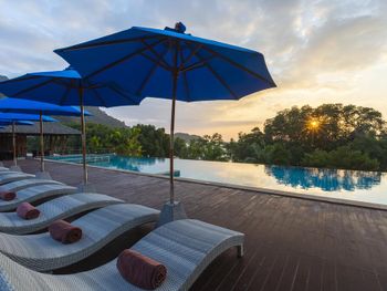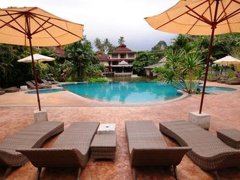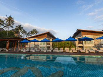 Хороший бассейн с удобными шезлонгами и красивым видом. Если прийти за 30-60 мин до заката можно увидеть птиц-носорогов на деревьях напротив. Хорошие вкусные завтраки. Рядом пирс и набережная с большим количеством местных разнообразных кафешек и салонов массажа.