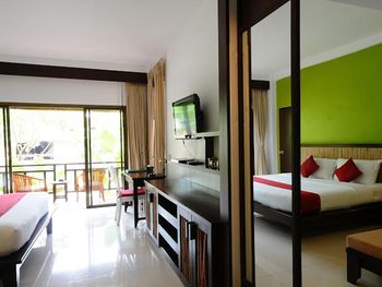 Номер был смежный- через дверь в соседнем номере было слышно все, поменять нам номер на звукоизолированный не смогли. Кондиционер дул на кровать-либо на одну, либо на другую, поэтому мучались от духоты ночью, балкон не открыть-нет сетки москитной. Жили до этого на Аонанг- добраться до отеля с чемоданами-ещё то приключение: причалов нет и погрузка-выгрузка с песчаного берега,где лодки в воде! Обратно ехали в аэропорт-это в другую сторону и уже есть причалы, за 20 брат вам отнесут и принесут чемодан по лестницам.