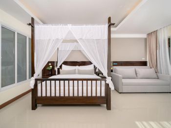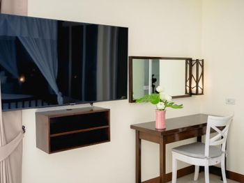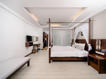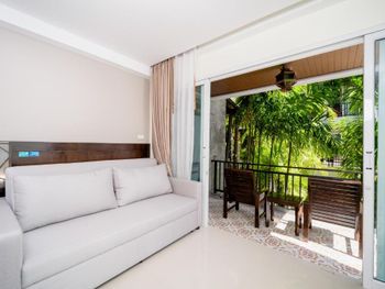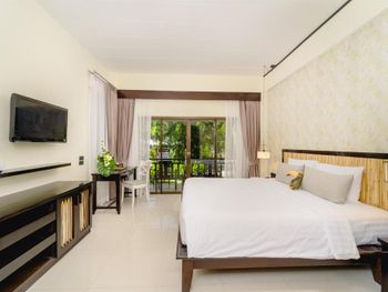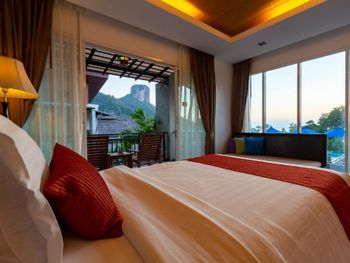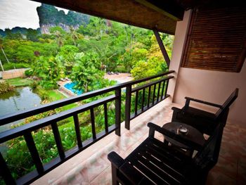 Номера курортного спа-отеля Railay Princess с собственным балконом с видом на бассейн оформлены в тайском стиле. В числе удобств спутниковое телевидение.