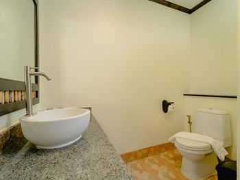 Мы заметили интересную специфику, практически все русские туристы жили именно в старом корпусе отеля возле пруда. Основной минус- постоянная вонь канализации в ванной комнате, сам интерьер ванной оооочень ушатанный, очень старый ремонт, в душевой нет ручного душа и пользоваться только верхним душем крайне не удобно с 1,5 летним ребёнком. Абсолютно не эргономично ставить высокий смеситель на бортик отдельно-стоящей раковины, просто вы, полностью столешница и полы вокруг были постоянно залиты водой, просто НЕВОЗМОЖНО по другому помыть руки. Постельное белье уже изрядно износилось от сумасшедшего количества стирок и местами в мелких дырках. А ГЛАВНЫЙ МИНУС это вообще кто придумал размесить кондиционер сбоку ровно напротив кровати, то есть он будет дуть вам именно в голову! Даже если не очень жарко, с открытым окном находиться нельзя, днём придут обезьяны и обязательно что нибудь стащят из вашего номера, днём/вечером зажрут комары, там их очень много, пруд прям в 3 метрах от балкона. В номере моей мамы в первую ночь в ванной был замечен огромный таракан. Завтраки супер скромные, не понравились.