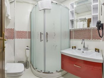 Никакой шумоизоляции в номерах. Если номер выходит на улицу, то спать становится невозможно. С окнами во двор полегче, но слышно всех соседей. Шампунь и гель для душа отвратительные. Стоит покупать свои.
