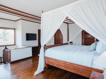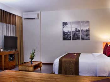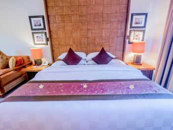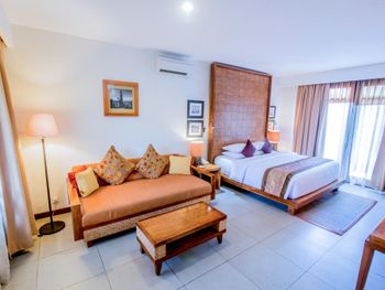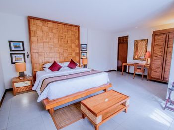1. Запах в номере. Сырость, вперемешку с цветочным освежителем. 2. Кондиционер сбоку кровати. Ночью просто всё дует на кровать. Пришлось спать без кондиционера в духоте. 3..Свет на балконе не выключается. 4. Свет при входе, расположенный над минибаром, так же не имеет выключателя. Слепит глаза, уснуть нереально. 5. Нет розеток для зарядки. Нужно было выключать лампы, дабы зарядить телефон. За тумбочками, провода в пластиковой спайке и в паутине. 6. Душевая лейка забилась и вода просто лилась черещ все щели лейки. 7. Доисторический фен, который практически, не дует горячим воздухом. 8. Номер на 3-м этаже (естественно, без лифта). 9. Ну и основной минус - находится сие чудо в 65 км от аэропорта. Смысл - не ясен, так как таких отелей хватает и в Куте, Чангу и Семиньяке. На байке ехать не рекомендую.