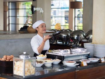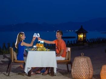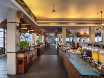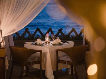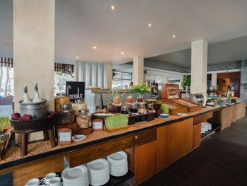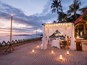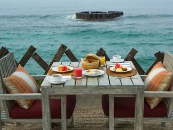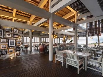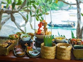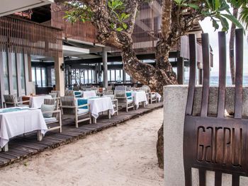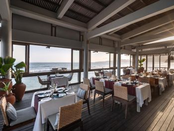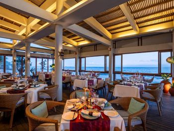 Partly above the sea, the elegant Garpu Restaurant & Bar serves Mediterranean, Italian and local dishes. Outdoor dining is also available on the restaurant's terrace.