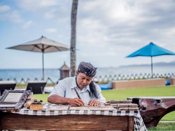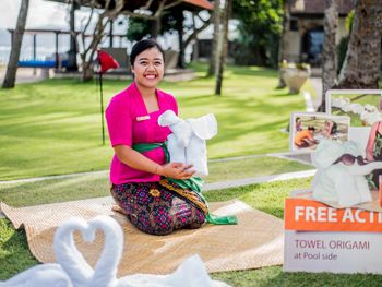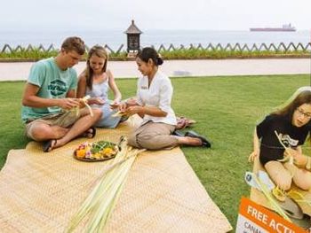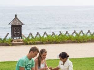 Guests are invited to lounge by the pool or relax on swing beds on the resort’s front terrace on the white sand overlooking the ocean. Recreational activities include diving, Balinese dance lesson and cooking class.