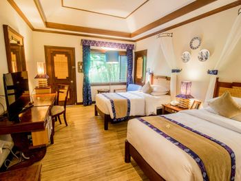 Отель на 2-3 звезды максимум. Внимание, номера старые, на туалете пятна на пластике во всех номерах, кнопок выключателей на стенах столько, что нужна инструкция и образование инженера, половина не работает, розетки не все работали. Кондиционер над кроватью, под конец отдыха через стены пошла вода от дождя, из отеля нельзя уехать на такси через греб только через местное на 100 тысяч дороже, в первый раз в номере плохо смывался и работал туалет, исключительно в крайнем случае сюда заселяйтесь. Того не стоит.