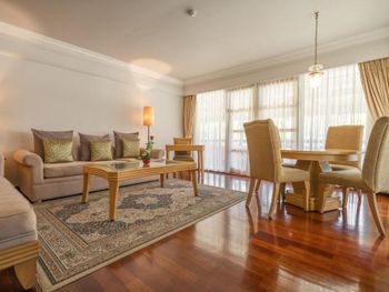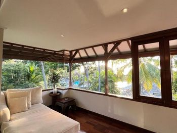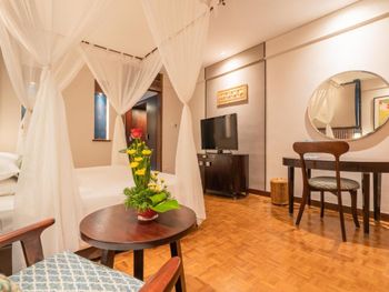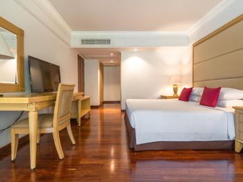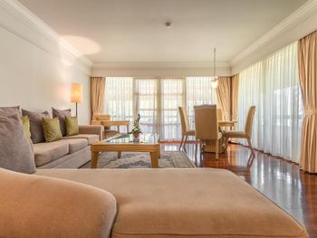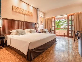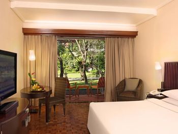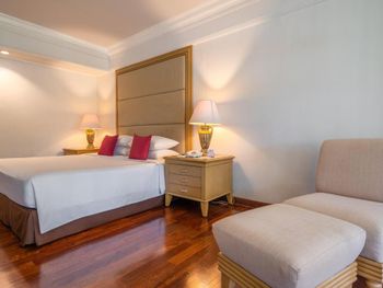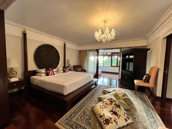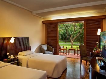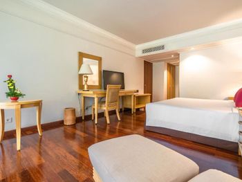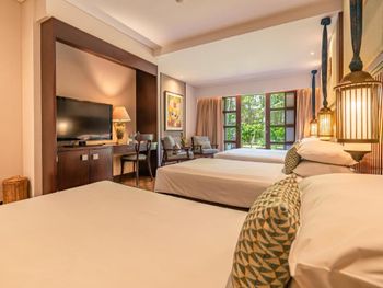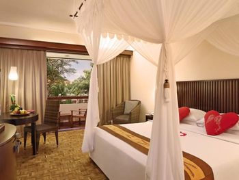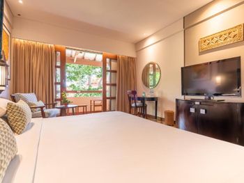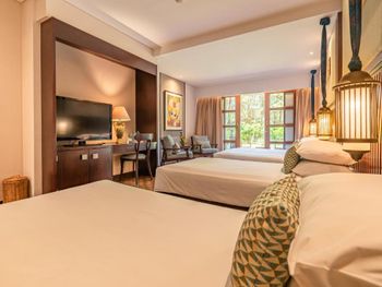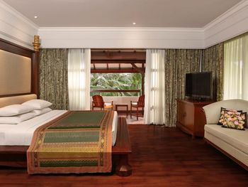 Номера этого 5-звездочного курортного отеля оформлены в современном стиле. Пол выложен деревом. В каждом номере есть телевизор и собственный балкон с видом на сад. Предоставляются туалетно-косметические принадлежности.