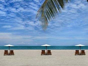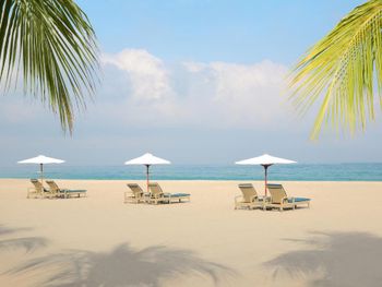 На пляже гостиницы всего три зонтика с двумя лежаками под каждым! Это очень мало! Мы не могли ни разу отдохнуть на пляже!