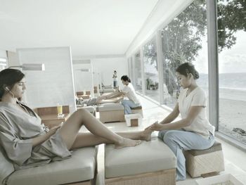 Раздевалка со шкафчиками в фитнес-центре / спа-салоне