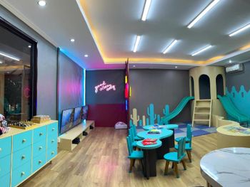Детская игровая отличная, чистая, игрушки все в отличном состоянии, много книг и все как новые. Не понятно почему работают только до 5, ведь именно вечером ребенку нечем заняться.