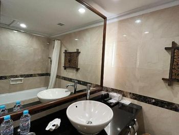 Плохой интернет, застиранные полотенца, белье, никаких там нет пять звёзд, максимум три, старые номера, зачуханное все👎🏻☹️, воняет сыростью, однообразные завтраки, ни разу не видел чтобы чистили бассейн, на дне песок с травой! Жалко поставить лосьон для тела? В туалете воняет канализацией! Короче жуть полная!