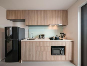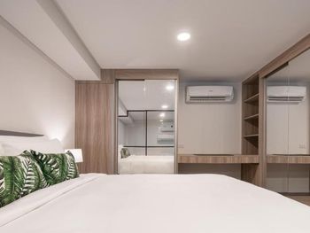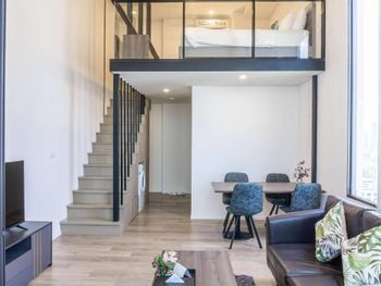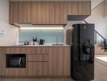 В номере было душно, нет хорошей вентиляции и нельзя проветрить, окна не открываются. Было грязно: в стены в ванной и столешница на кухне были в волосах, кажется, что все убирали одной тряпкой. Поэтому уборку в номер не пускала. На кухне 2 набора тарелок и приборов для еды, но нет доски, ножа и средства доя мытья посуды. Нет подсветки лестницы, легко ночью можно упасть. Нет подставки для сушки белья. Номер меньше чем на фото, видимо фотографировали на широкоугольную камеру. Район пустой, ничего интересного, нужно мин 10 на метро до цивилизации и красивого Бангкока ехать