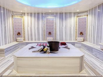 Цена на некоторые услуги - массаж за 80 евро это слишком. Правда стоит учитывать направленность отеля на европейского туриста. Бассейн очень маленький, точно не для плавания, турецкая баня слабовата - нет подогрева лежанок, приходится по старинке поливать их горячей водой, и это странно, потому что стены с подогревом.