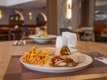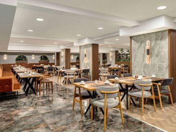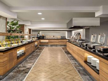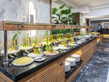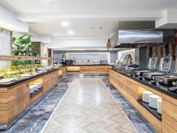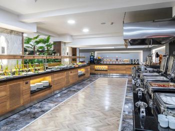 Для гостей сервируется завтрак «шведский стол», вегетарианский завтрак и халяльный завтрак. При Ramada by Wyndham Dalaman работает ресторан, где подают блюда международной кухни. По запросу для гостей приготовят вегетарианские, безлактозные и халяльные блюда.