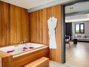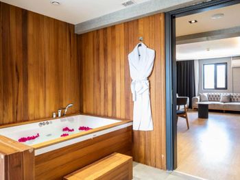Мне не понравился размер комнаты. Он был меньше минимально заявленного и меньше заказанного мной на Букинге. Размер был таким, что свободного пространства по периметру кровати оставалось, около 30 см. Было МАКСИМАЛЬНО тесно и душно. А тут ещё и кондиционер …. Кондиционер выключался при открытии двери балкона. Иногда нужно было выбирать: температура воздуха или наличие кислорода. Потому что дверь в ванную комнату была закрыта из-за… Вода из душа вытекала на всю ванную комнату и создавала огромную лужу. Приходилось с ней справляться в рукопашную. Ресторан, полный отстой!!! Не вкусно, не понятно, не к клиенту! Бульвуардье - совсем не тот! Сибас с костями и очень не вкусной травой в гарнире !! Качество и научненость персонала ресторана не соответствует заявленному уровню.