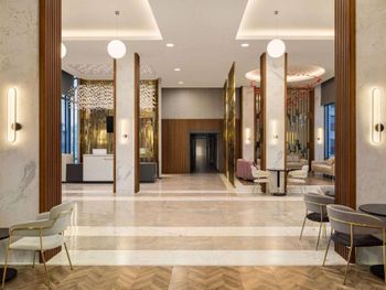 Чисто, рядом с аэропортом, что удобно, если поздний или ранний прилет. Сотрудники вежливые, есть бар. Завтраки неплохие, всё красиво. Приятно. Успели заказать поесть, правда только бургеры были, потому что ресторан до 23:00