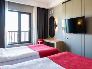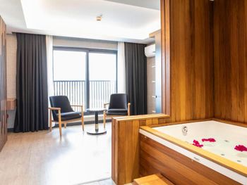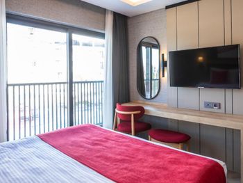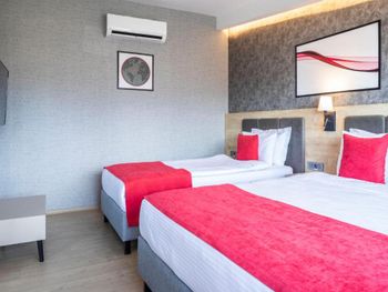 В ночь нашего размещения во внутреннем дворе отеля у бассейна гремела турецкая свадьба. Музыка была такой громкой, что невозможно было не то что спать, даже читать или заниматься своими делами. Персонал отеля с ресепшена просто врал весь вечер, каждый час обещая что шум вот-вот закончится. А вставать нужно было в 5 утра. В итоге, около 23:00, после очередной жалобы, нам перезвонил старший менеджер смены и предложил переселить нас в другой номер, окна которого выходили не во внутренний двор. Так удалось хоть немного поспать. Спасибо этому сотруднику. Но в целом отношение к гостям просто свинское. Отель должен быть организован так, чтобы проходящие в нем мероприятия не мешали отдыху жильцов!
