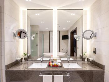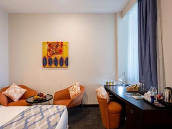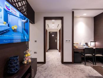 Ramada Encore Doha by Wyndham’s rooms include satellite channels, tea maker and daily water bottles. Each room has a minibar, work desk as well as a private bathroom stocked with free amenities.