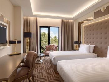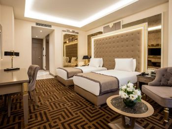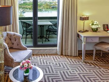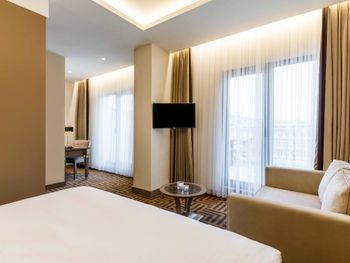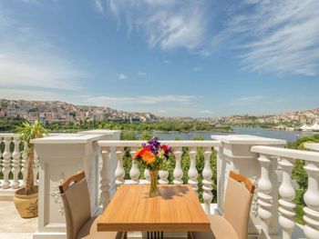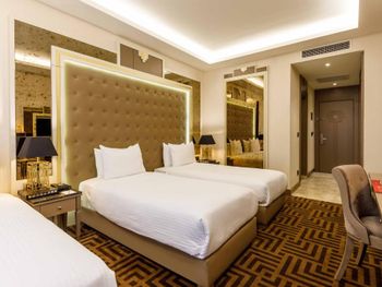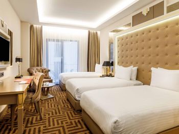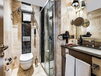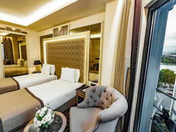Красивая архитектура отеля. Расположен на набережной Золотого Рога, 10-15 минут на такси до центра. Очень приветливый персонал. Я приехал поздно вечером и ждал семью, мне совершенно не понравился номер (вида в окно нет, только грязный колодец с кондиционерами; кресло было в пятнах; во многих местах следы износа мебели и стен). Несмотря на мои эмоции, персонал спокойно воспринял мои замечания, администратор потратил больше часа времени на то, чтобы показать другие варианты, поменял кресло и пообещал утром поменять номер. Разумеется, как это и бывает, за ночь мы с семьей привыкли к номеру. Однако администратор позвонил и предложил посмотреть освободившиеся варианты, и мы выбрали хороший и более просторный номер с боковым видом на улицу и залив. Спасибо за такое внимание!