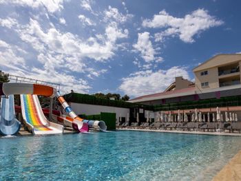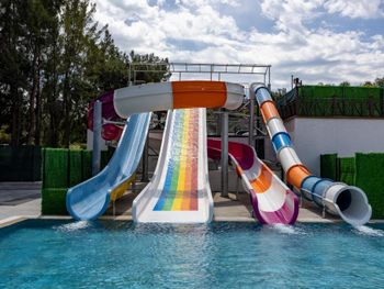 Aquapark working hours are short, kids were disappointed. A lot of people in the pool.