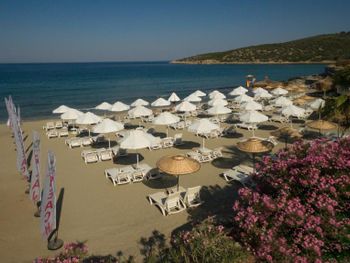 Hotel beach locates far from the hotel, difficult to reach with all beach stuff. Beach coast is stony, the sea enterance covered with sharp slippy rocks, you need aquashoes. Beach buffet is poor, only drinks