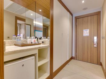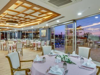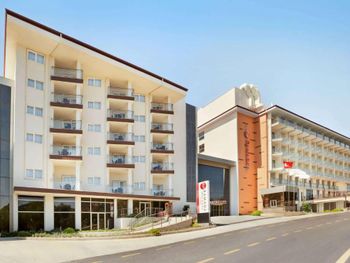 Ramada Hotel & Suites by Wyndham Kusadasi Kusadasi in Kusadası has 4-star accommodation with a private beach area, a seasonal outdoor swimming pool and a fitness centre. The property features a bar, as well as a restaurant serving International cuisine. The property offers a terrace, a 24-hour front desk, and free WiFi is available.