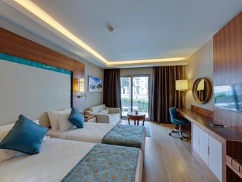 Отличный отель .Да ,пляж далеко .Но ходит шатл бас и можно за 25 мин дойти пешком .Питание хорошее ,есть анимация и детская и взрослая .Из минусов то что к 7 утра все лежаки у бассейна заняты полотенцами ,но мы и не ходили туда.Номер большой ,все чисто и работает .Очень понравилось ,но мы были 4 дня ,в рамках путешествия по Турции на авто .